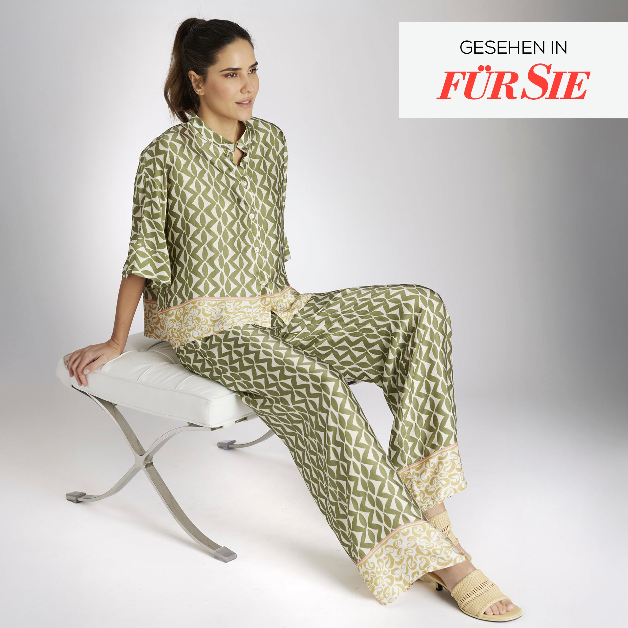 Frische Prints und fließende Materialien machen diesen Look zu einem stilvollen Begleiter für die neue Saison.