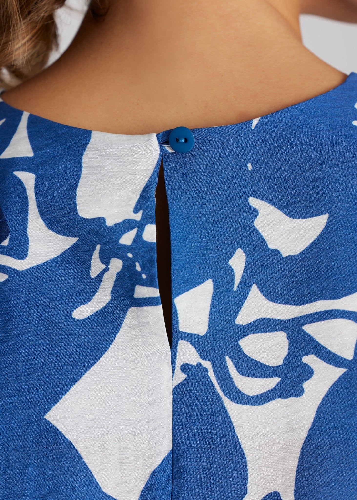 - Button closure at the back