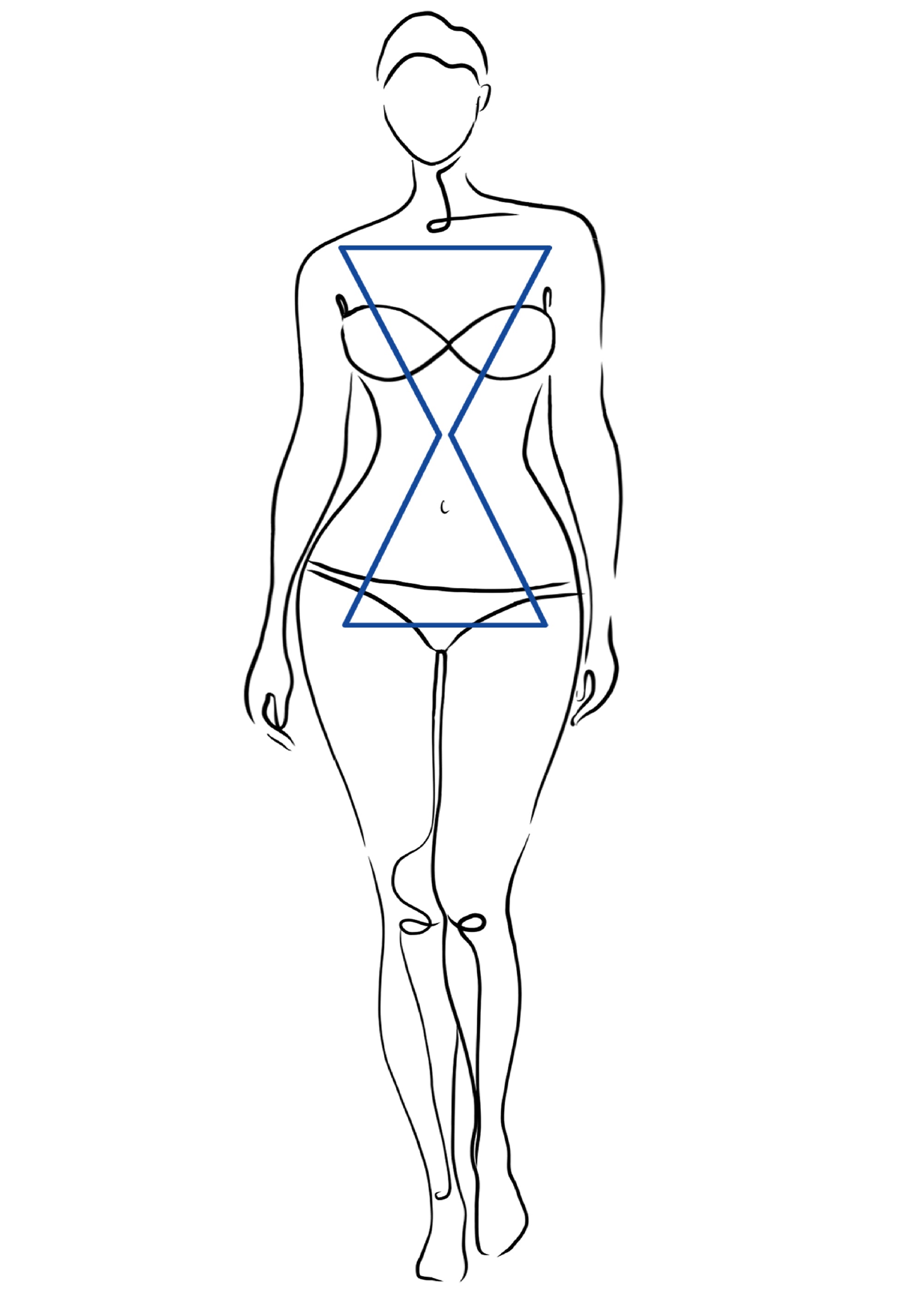 etwa gleich breit, die Taille ist klar erkennbar. Diese Figurtypen Frau-Variante steht für ausgewogene Proportionen und feminine Kurven. Die natürliche Linienführung bietet ideale Voraussetzungen für figurbetonte Schnitte, die Ihre Mitte in den Fokus rücken.
