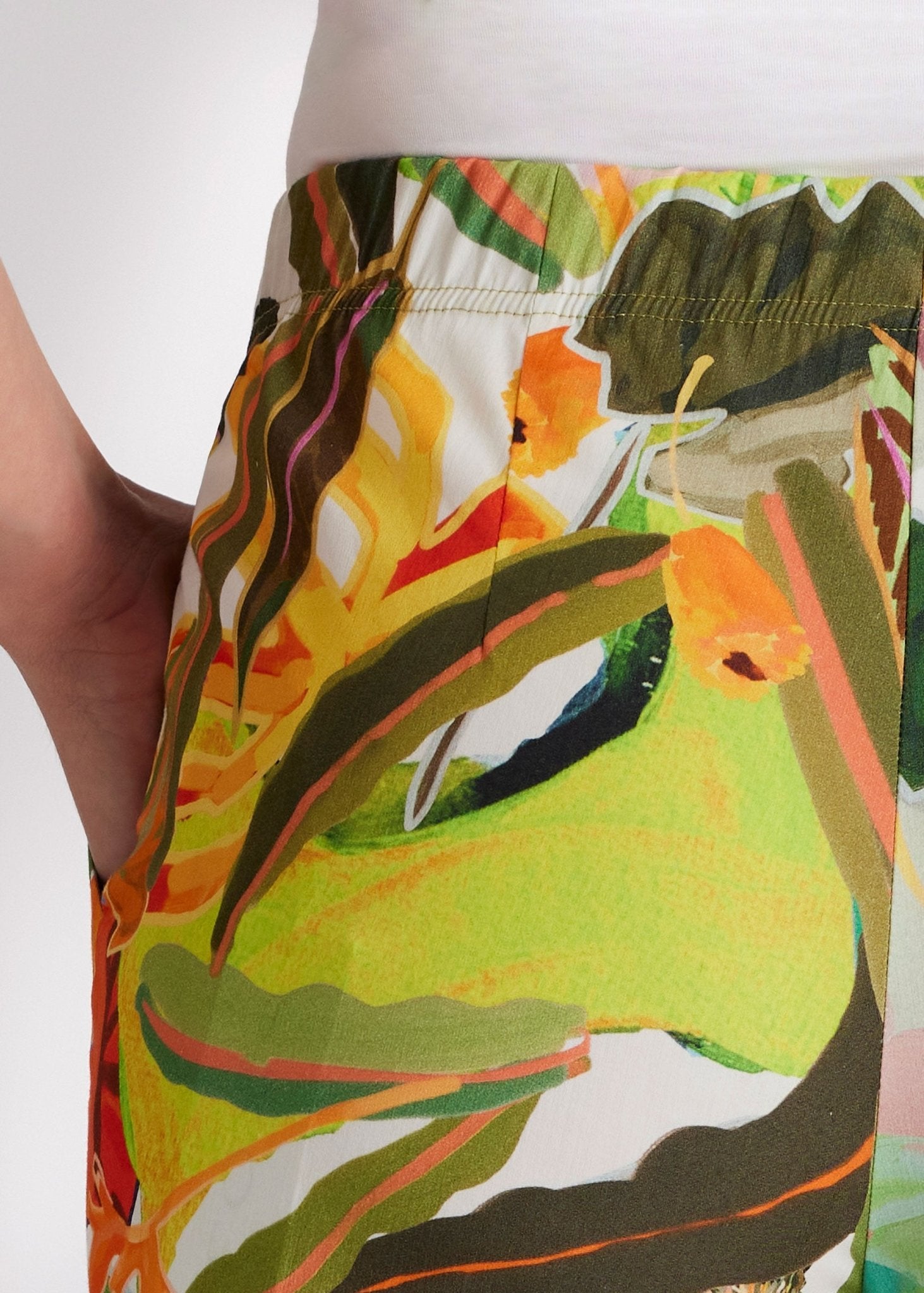 Die Hose USTRADI hat durch den weichen Bio-Baumwollstoff mit Elasthan eine angenehme Passform und bewegt sich flexibel mit. Das schmal geschnittene Bein in trendiger 7/8-Länge betont eine feminine Linie. Dank elastischem Bund sitzt sie rundum bequem, während die seitlichen Taschen eine lässige Note verleihen.